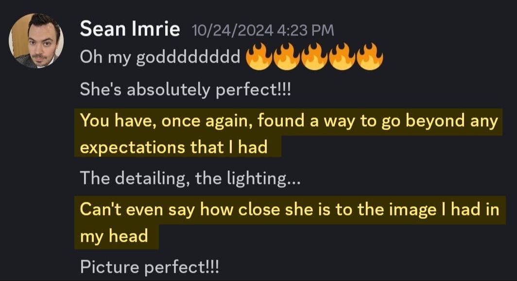 Once you've decided to take the next step, let's talk to flush out how you want this commission to be. I want to make sure the image will be exactly what you envision.